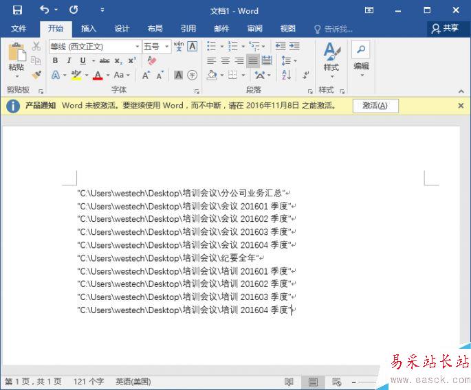 然后打開Word文檔選擇粘貼,將這些文件夾名稱的路徑復(fù)制到Word里。