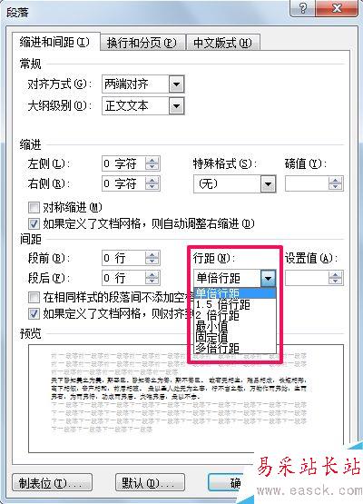 6、這里說一下,除了設(shè)置單倍、1.5倍、雙倍以及多倍行距外,還可以選擇固定值,通過調(diào)節(jié)數(shù)值來精確的調(diào)整行距大小。