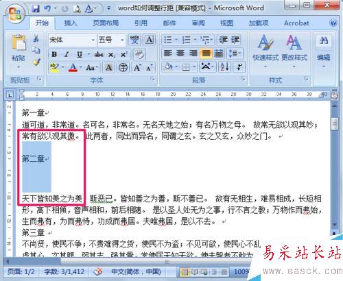 1、首先選中要調(diào)整行距的文本。