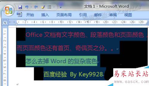 平時我們上網看到喜歡的文字可能喜歡復制到word中,但可能發現很多的顏色,想改也改不下。其實如果你對Office比較熟悉,則你應該也知道Office文檔有時會叫做word頁等,而頁又有段落組成,段落又有文字組成,所以Office文檔也一樣,顏色(底色)有文字底色、段落底色和頁面義勇色之分,而頁面顏色還有首頁、奇偶頁之分等等。而如何去判別和設置這些顏色的組合應用呢?