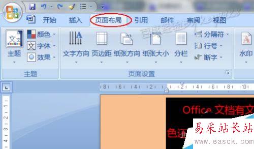 3、然后,再點擊“頁面布局”選項卡中的“頁面顏色”按鈕,從彈出的顏色面板中選擇“無顏色”即可: