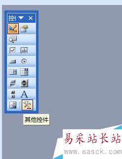 2、在“控件工具欄”中我們 找到右下角的“其它控件”按鈕,如下圖1,單擊“其它控件”按鈕,在下拉列表中找到“Microsoft Barcode 控件 9.0“;