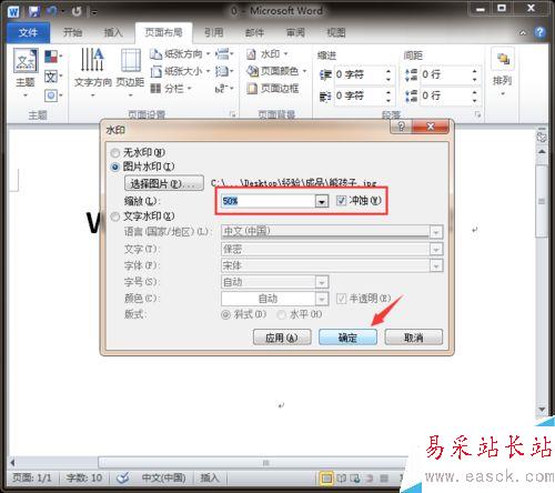 4、添加好以后,設置圖片水印的顯示大小和模糊程度,設置好以后點擊“確定”按鈕即可,如圖所示。