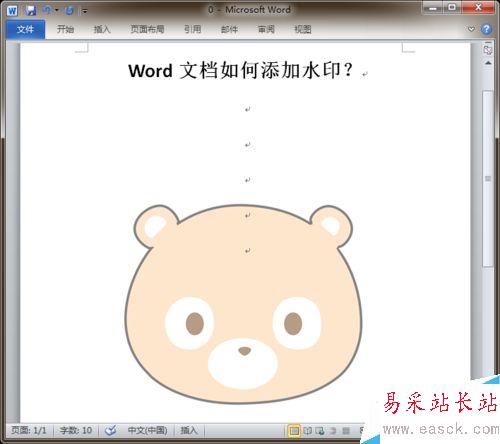 5、這時候,我們就可以在文檔中看到剛剛插入的圖片水印了。