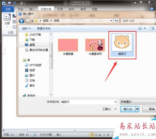 3、在文件夾中,我們需要找到自己事先準備好的圖片文件,作為圖片水印加入word文檔中,如圖所示。