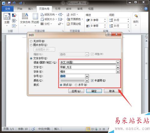 7、設置完成后點擊下方的“確定”按鈕,將剛剛輸入的文字水印加入到word文檔中,如圖所示。