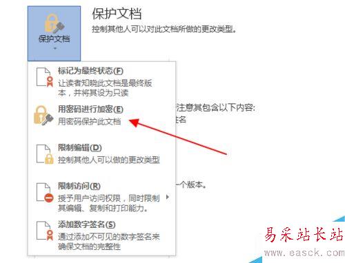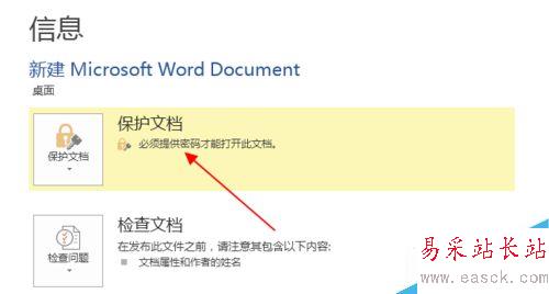 6、文檔即可加密成功。成功后系統顯示保護文檔,必須提供密碼才能打開此文檔。