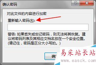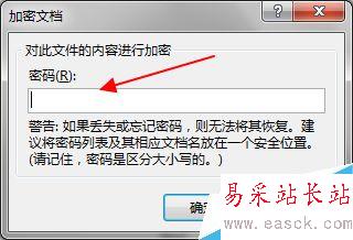 4、輸入進行加密的密碼,然后點擊確定按鈕。這個密碼用于在加密完成后需要打開文檔時輸入,如果不知道這個密碼就無法打開該加密的文檔。