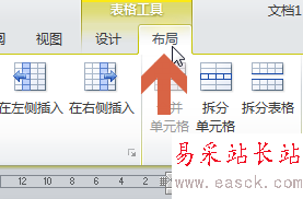 2、點擊表格后,word2010菜單欄處會出現“布局”選項卡。此時點擊“布局”選項卡。