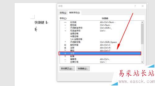 5、選中這個字符,然后點擊【快捷鍵】按鈕。進入對“§”的設置面板