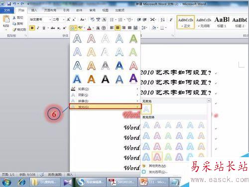 5、再次選中要添加藝術效果的文字,然后選擇【文本效果】按鈕,在下拉菜單中選擇想要的效果(本經驗:發光)。