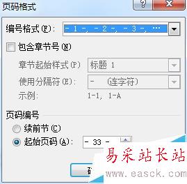 3、在“設置頁碼格式”中設置起始頁碼為1,確定完成。這時候就可以打印指定的頁面了。