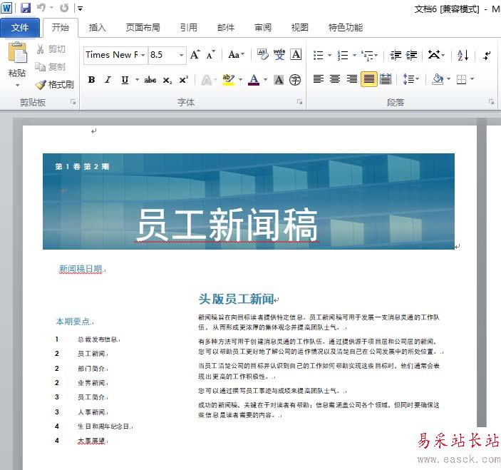 以上就是word2010新建一個(gè)員工新聞稿的教程,希望大家喜歡,請(qǐng)繼續(xù)關(guān)注錯(cuò)新站長(zhǎng)站。