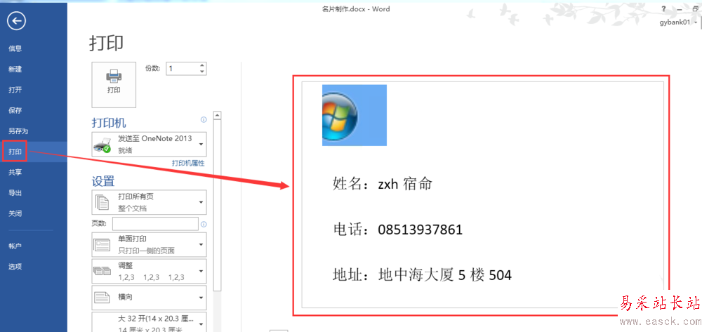 7、然后回到word界面,名片的大概樣式就設(shè)置好了。