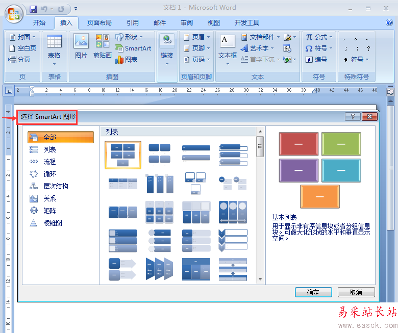 4、進入選擇smartart圖形對話框;