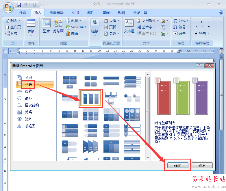 5、點列表,選擇圖片重點列表,然后點確定;