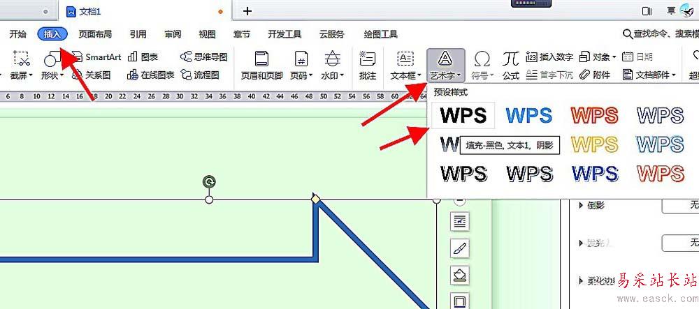 5、屬性選好后,在工具欄中選擇“插入---藝術字”選擇自己喜歡的藝術字,