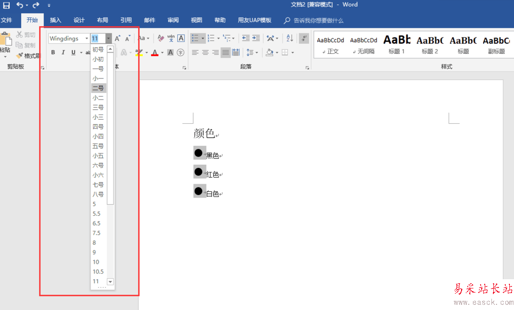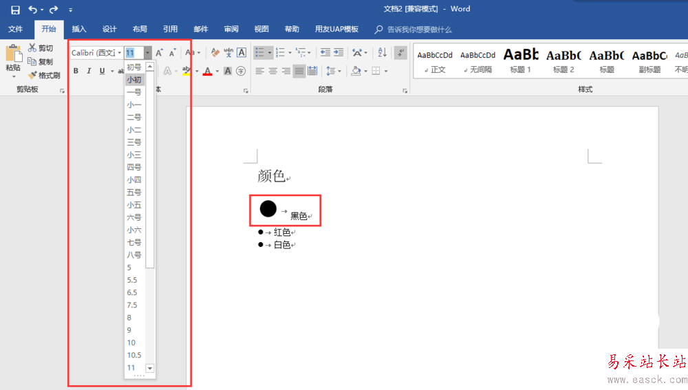 2、在字體大小那里選擇合適的大小,項(xiàng)目符號的大小就可以調(diào)整到合適大小。