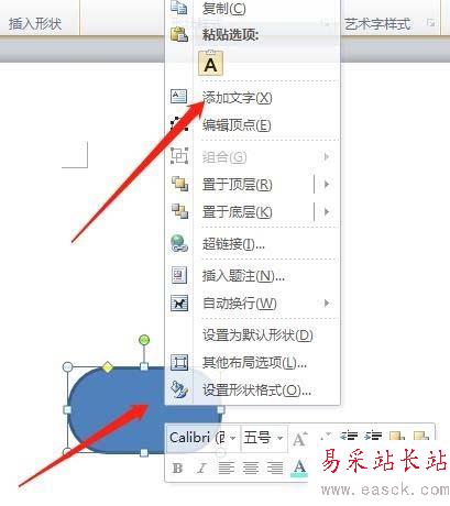 3、右擊圓角矩形,點擊添加文字,就可以在矩形框中輸入文字。