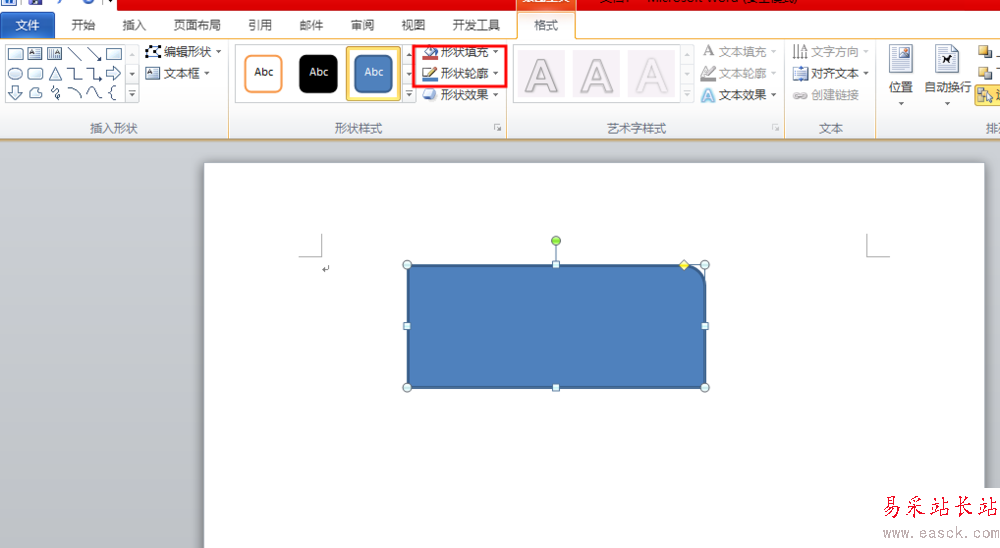 2、word和ps不一樣它沒有三維的繪制窗口,先在頁面中繪制一個形狀