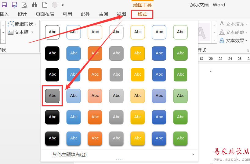6、選中繪制的圖形,切換到“格式”選項卡,在“形狀樣式”區域下選中適合的樣式。