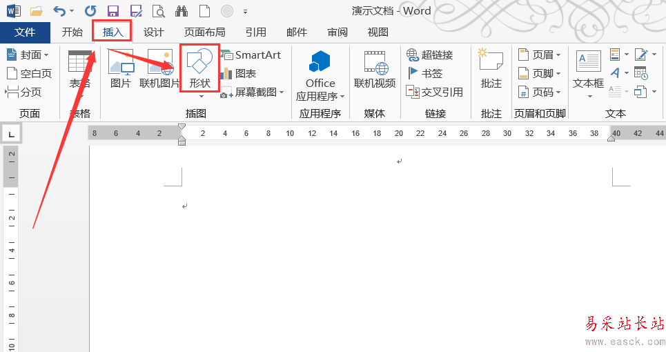 2、切換到“插入”選項卡,找到“形狀”按鈕。