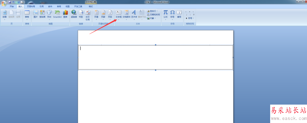 1、首先,我們插入一個「文本框」,然后將其寬度拖滿文檔兩側邊緣。