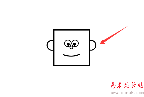6、使用【形狀】——【弦形】,畫出方臉的耳朵,設置輪廓線為【黑色】,填充色為【無色】。并按下圖位置放置。