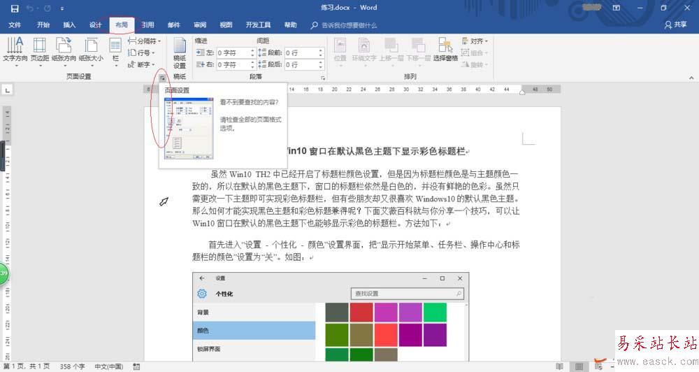 3、如圖所示,選擇"布局→頁面設置"功能區(qū)。點擊向右下箭頭,用于打開"頁面設置"對話框。
