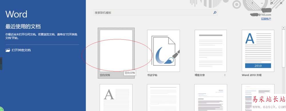 1、啟動Word 2016文字處理應用軟件,如圖所示點擊屏幕右側新建空白文檔。