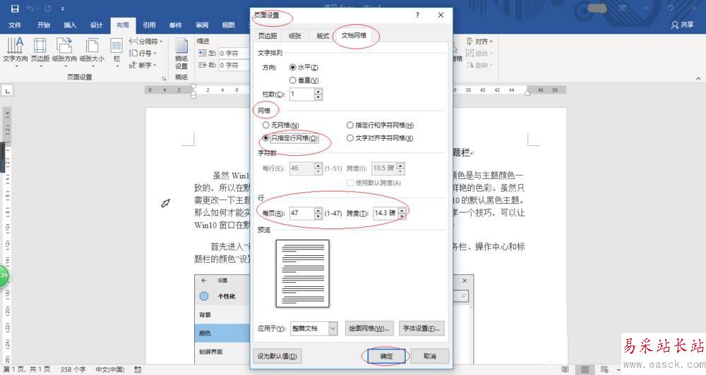 6、完成設置文檔每頁最多可輸入的行數(shù)操作,如圖所示。