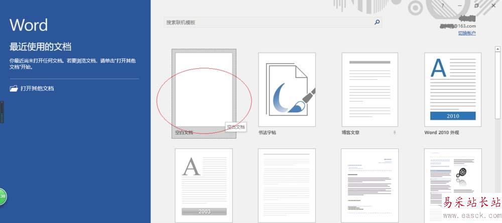 1、啟動(dòng)Word2016文字處理應(yīng)用軟件,如圖所示點(diǎn)擊屏幕右側(cè)新建空白文檔。