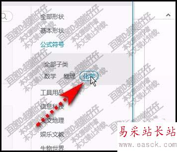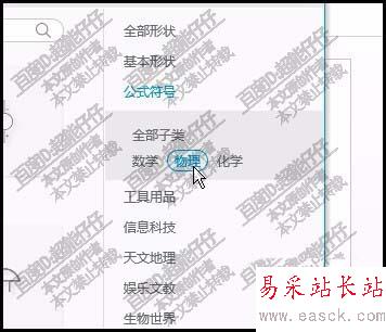 4、彈出子菜單,從中點擊:物理;左邊即彈出與之相關的符號