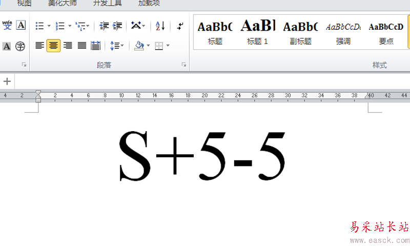 1、新建一個空白文檔,為了演示效果,輸入添加上下標的內容s+5-5.