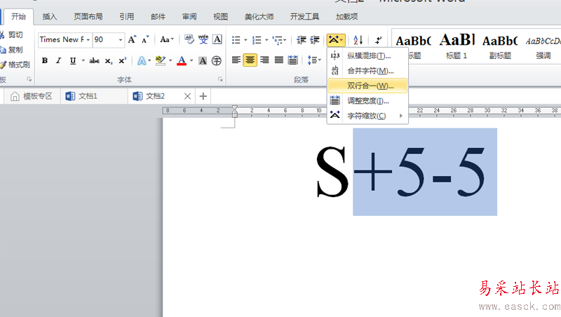 2、接著選擇需要設置上下標的內容,執行開始-中文版式-雙行合一命令。