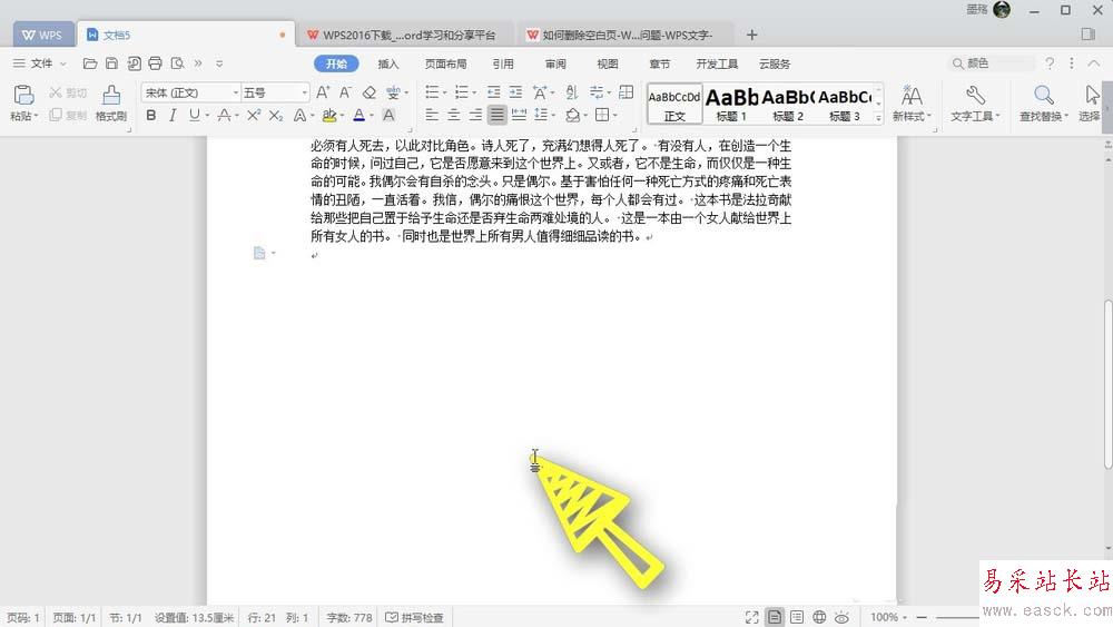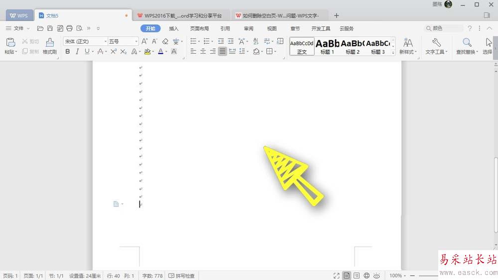 5、有時候我們會因為頁面下方加入了非常多的段落標記,而多出了頁面,我們可以直接刪除段落標記,這樣的處理方法比較簡單,如下圖所示,