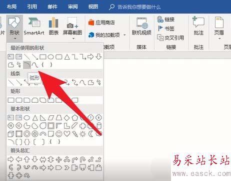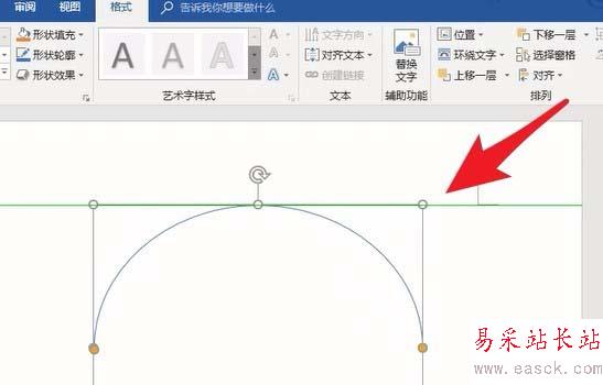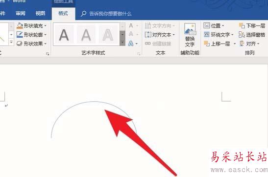 4、使用鼠標在文檔中點擊創建一段弧形。
