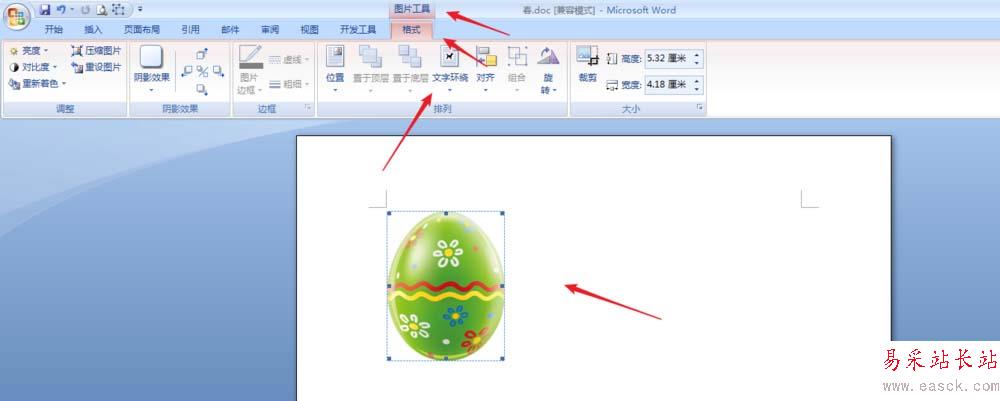 2、圖片添加完成后,我們選定圖片,點擊上方的“圖片工具”--“格式”--“文字環(huán)繞”。