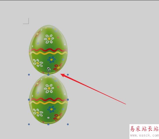 5、把其中一個圖片下移,與上一個圖片相連,然后如圖按住旋轉(zhuǎn)按鈕,把圖形旋轉(zhuǎn)成相反的樣子。