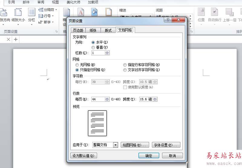 3、在頁面設置對話框中,切換到文檔網格選項卡。