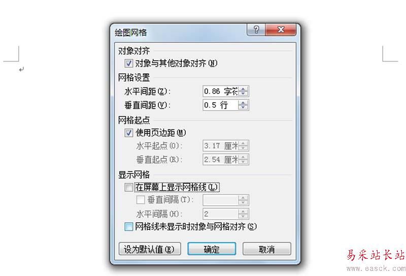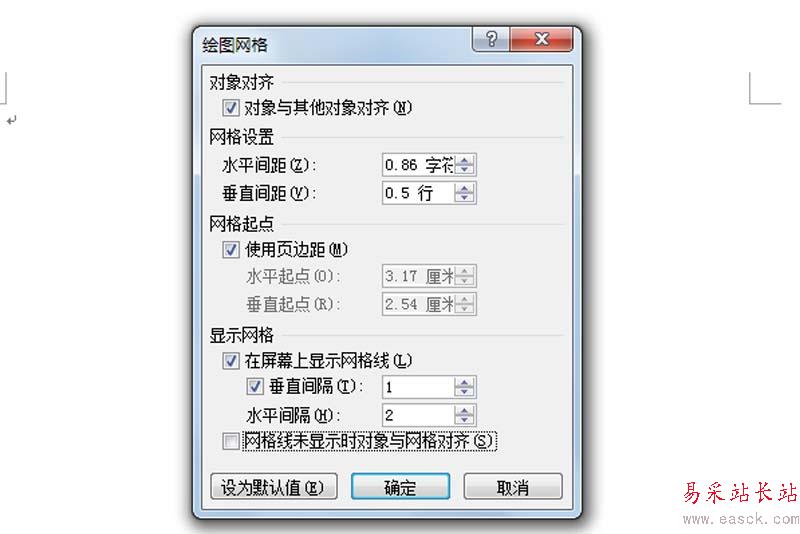 5、勾選在屏幕上顯示網格線選項,采用默認參數,點擊確定按鈕。