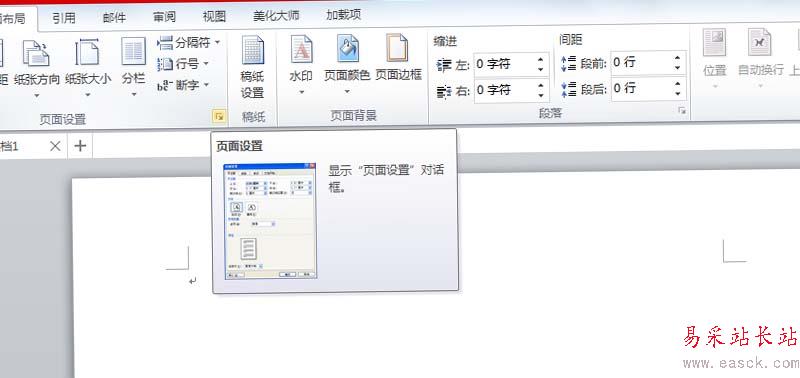 2、執行頁面設置菜單,點擊頁面設置右下角的斜箭頭。