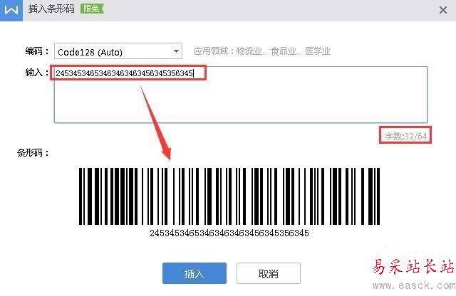 7、根據(jù)要求輸入數(shù)字或數(shù)字字母,在輸入的同時(shí),條形碼立即生成,記得不能超過64位