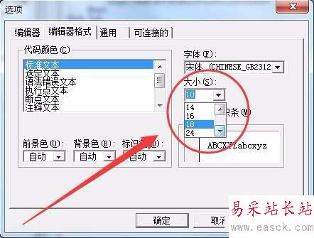 6、代碼顏色中,可以更改各種情況下的字體顏色。