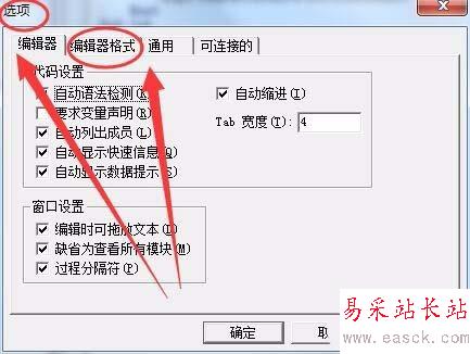 3、選項窗口中,單擊編輯器格式選項卡。