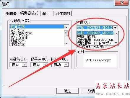 4、字體選項中,可以更改VBA代碼的顯示字體,本例保持默認字體。