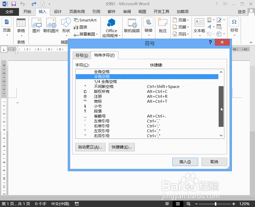 6、在特殊字符內找到零寬度非斷開空格選項,點擊插入之后我們就設置好了,如圖所示: