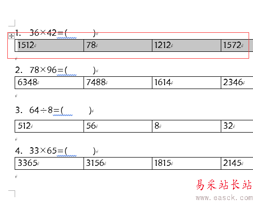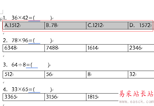 3、然后就是在插入的表格中輸入選擇題的答案選項