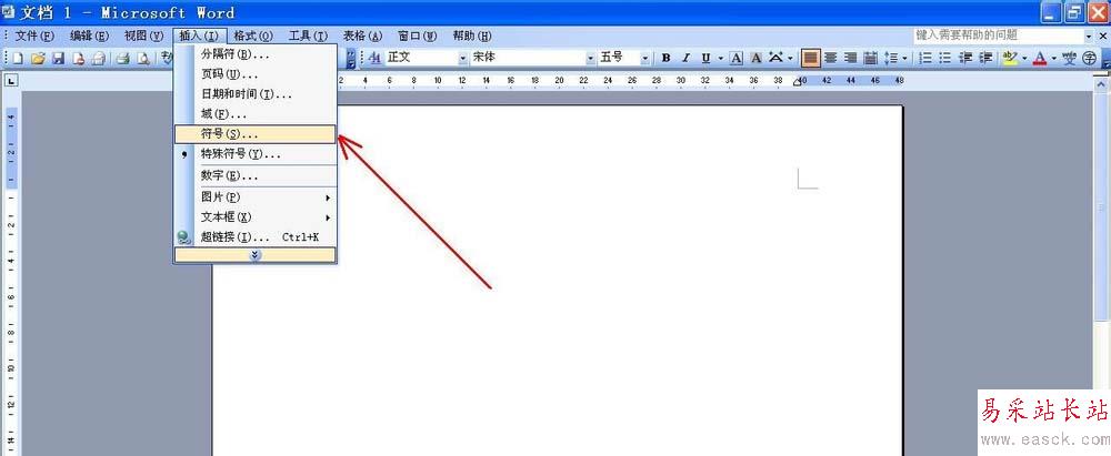1、打開word界面,根據下圖,選擇插入—符號。