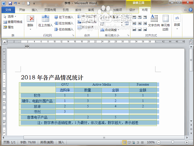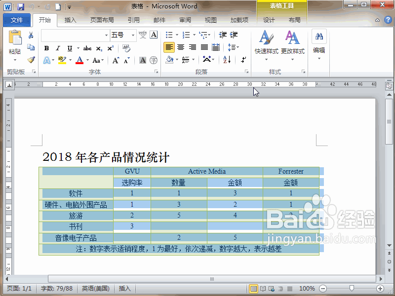 1、首先,打開要進行添加附加信息的Word2010文檔,選中準備添加信息的表格。